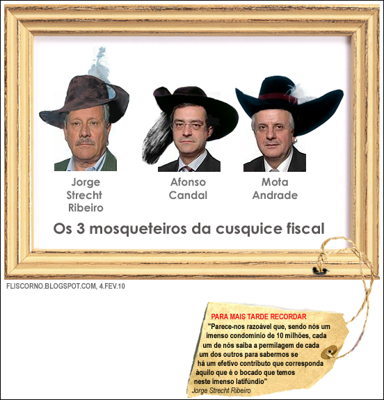 Esta legislatura, ida a anterior maioria absoluta, está a ser marcada pelo regresso da actividade parlamentar mas nem sempre pelas melhores razões. Os três cavalheiros deste boneco tiveram um espasmo mental e lembraram-se de avançar com legislação para publicar os rendimentos de todos os cidadão na net. Diziam que era a forma do PS avançar com a luta à corrupção como se o trabalhador por conta de outrem encaixasse no perfil de corrupto e como se o verdadeiro corrupto não passasse a ter o cuidado de ocultar os seus rendimentos. A proposta morreu na praia mas só depois dos seus proponentes fazerem finca-pé para a tentar manter. Tristes.